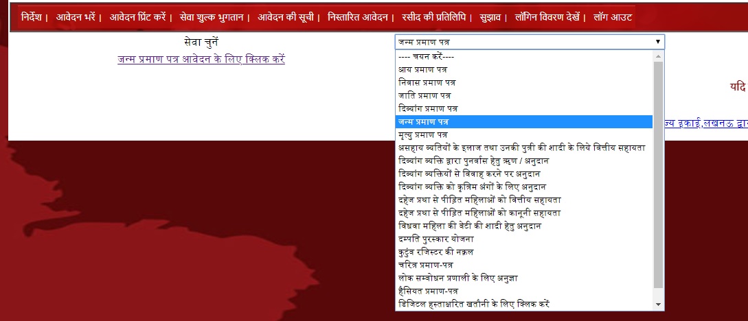 If you are a resident of UP then go to this URL directly you will be asked to login into your account. You can also first login and then click on Apply for online birth certificate.